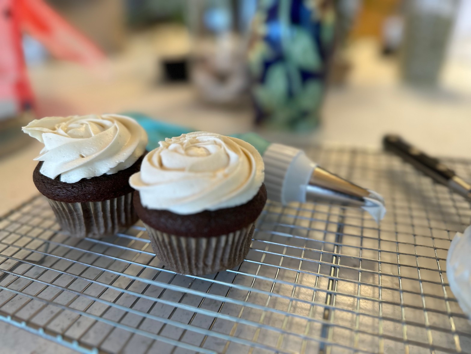 I’ll jump past the details of the charred black goo, smoke and unfortunate aftermath. I’ll spare you stories of my angry realization that I couldn’t just whip up a new batch as I lacked cocoa powder at this house having smartly taken it all up in a load to the new house on Wednesday to get ahead of the kitchen unpacking. I’ll skip all that and share the great news: I managed to make a new dozen and not only do they taste amazing, but they also allowed me to snap a few much needed “cupcake photos” for the cookbook!